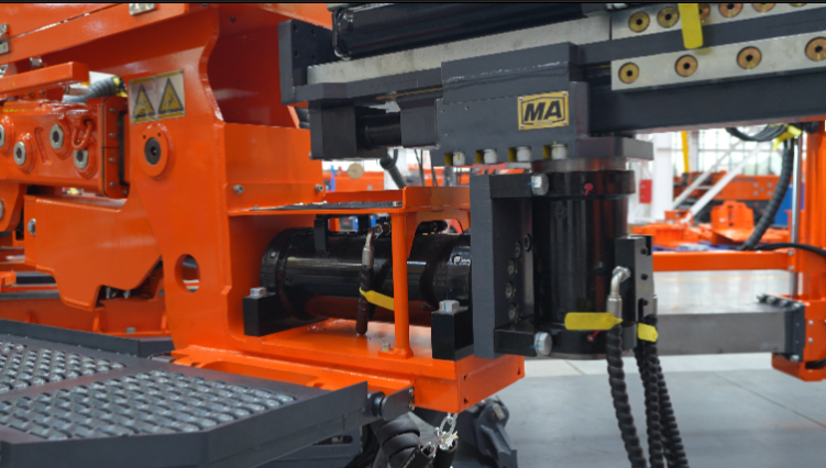 鉆臂底座1.5米行程的縱移機(jī)構(gòu),使得一次停機(jī)可完成3排以上的錨桿支護(hù),工時(shí)效率顯著提升。